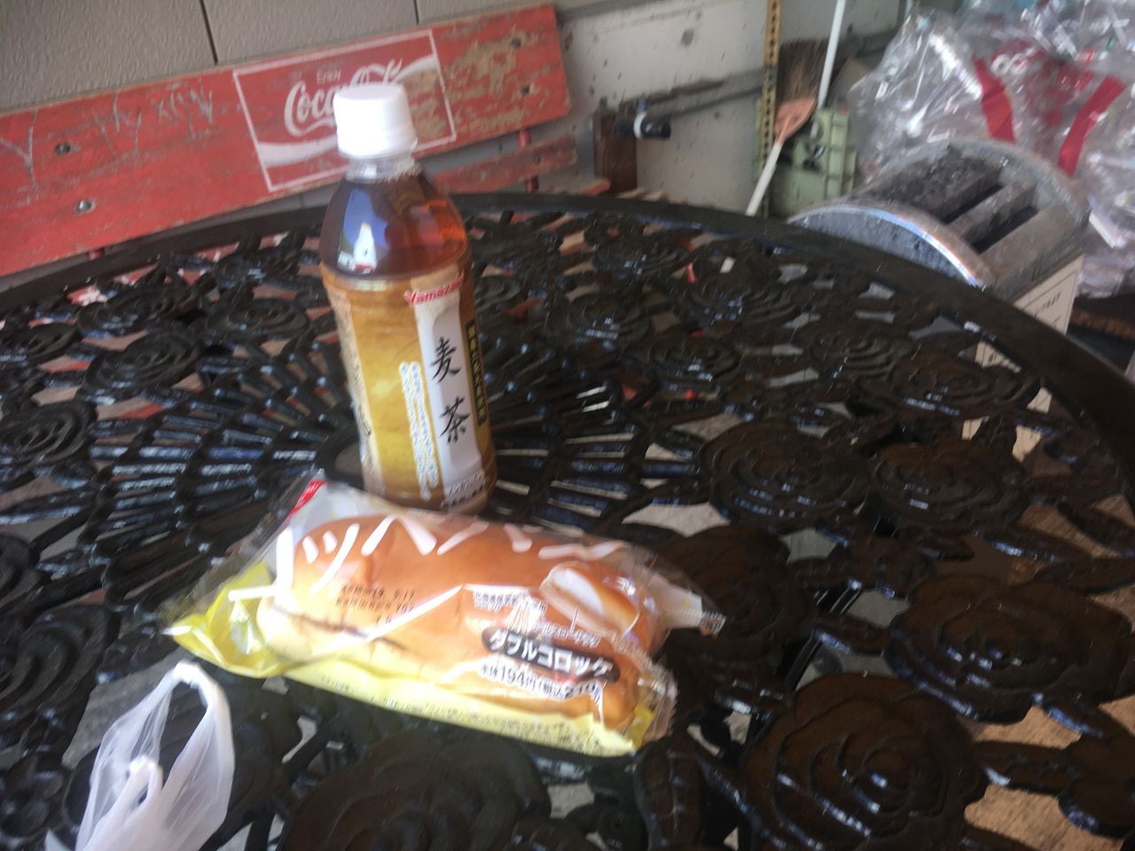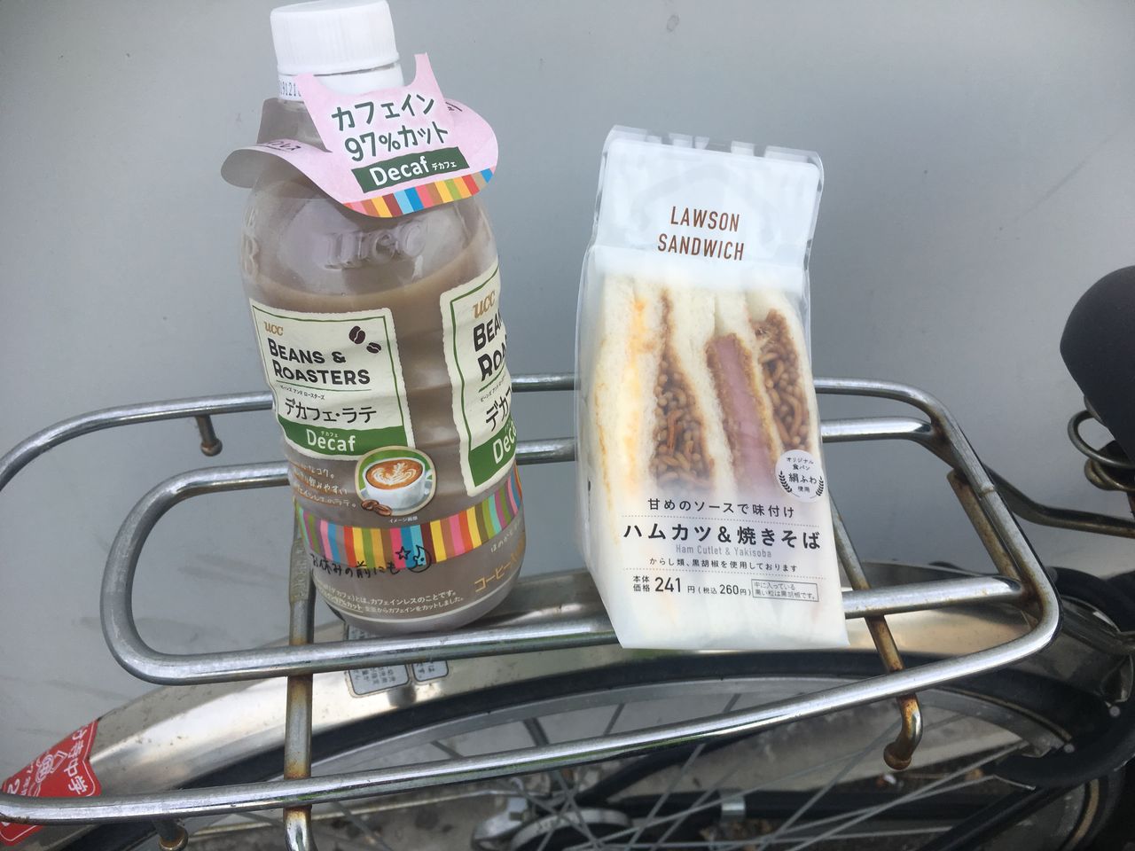 来た道を町に戻る感じでコンビニで朝食
