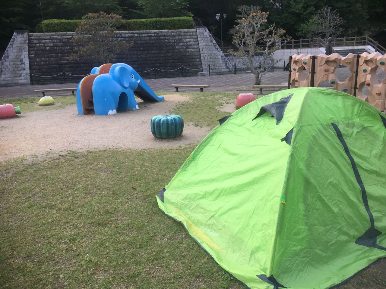 ついに公園でもない場所にまでテントを張れるようにレベルアップしましたよ(笑)