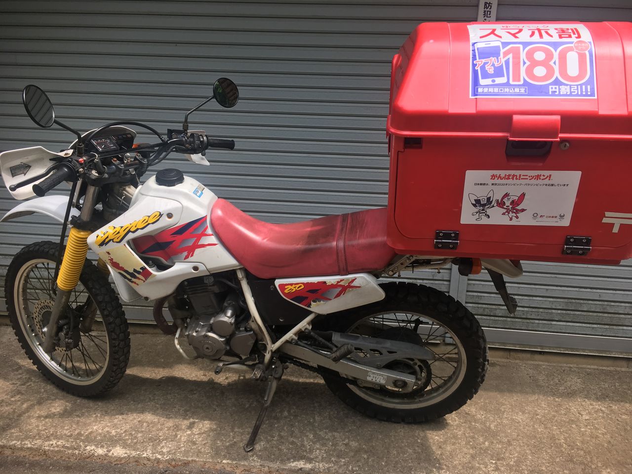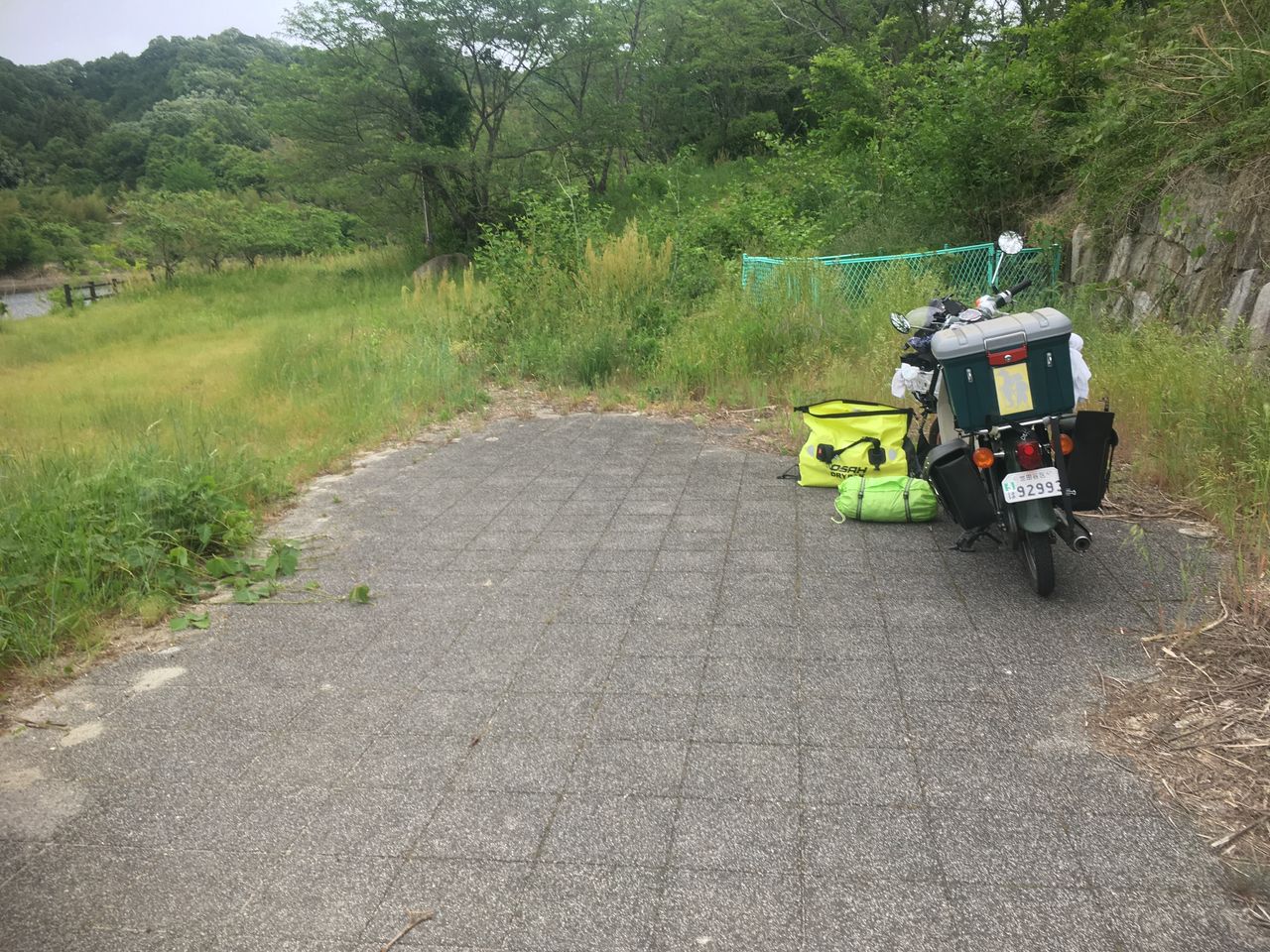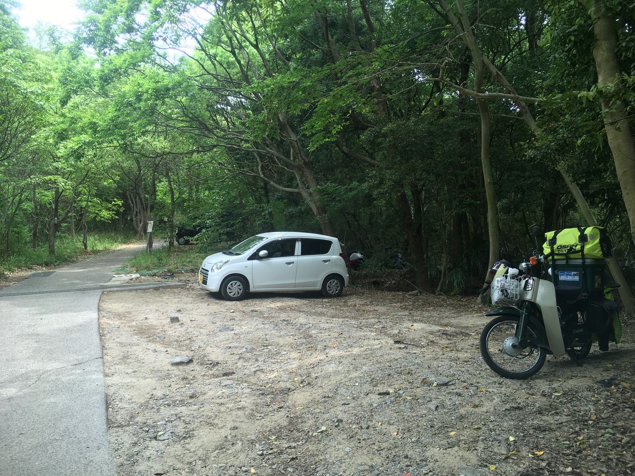 駐車場は手前にあったのかな?でも「2輪を除く」なので堂々と駐車します。