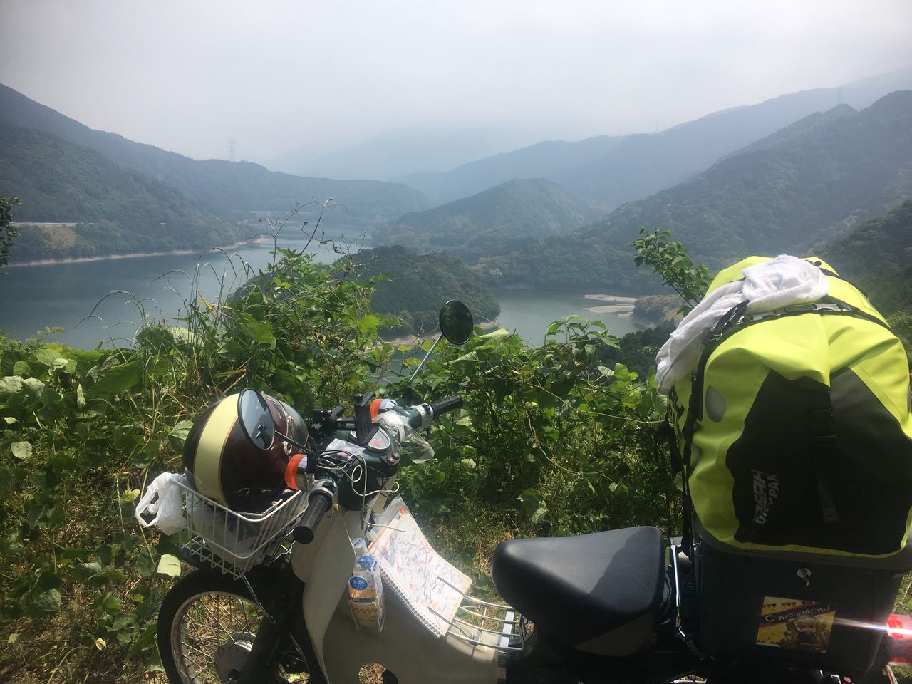 登山道の途中にひょいとバイクを止めて
