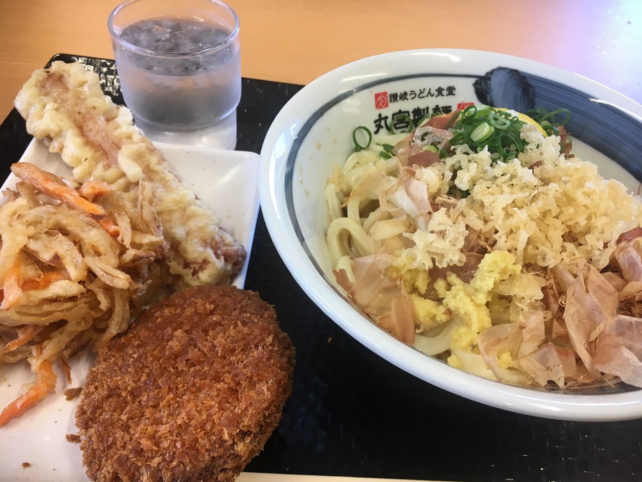 うどんと上天丼のセットを注文します。(ぜいたくーーー)