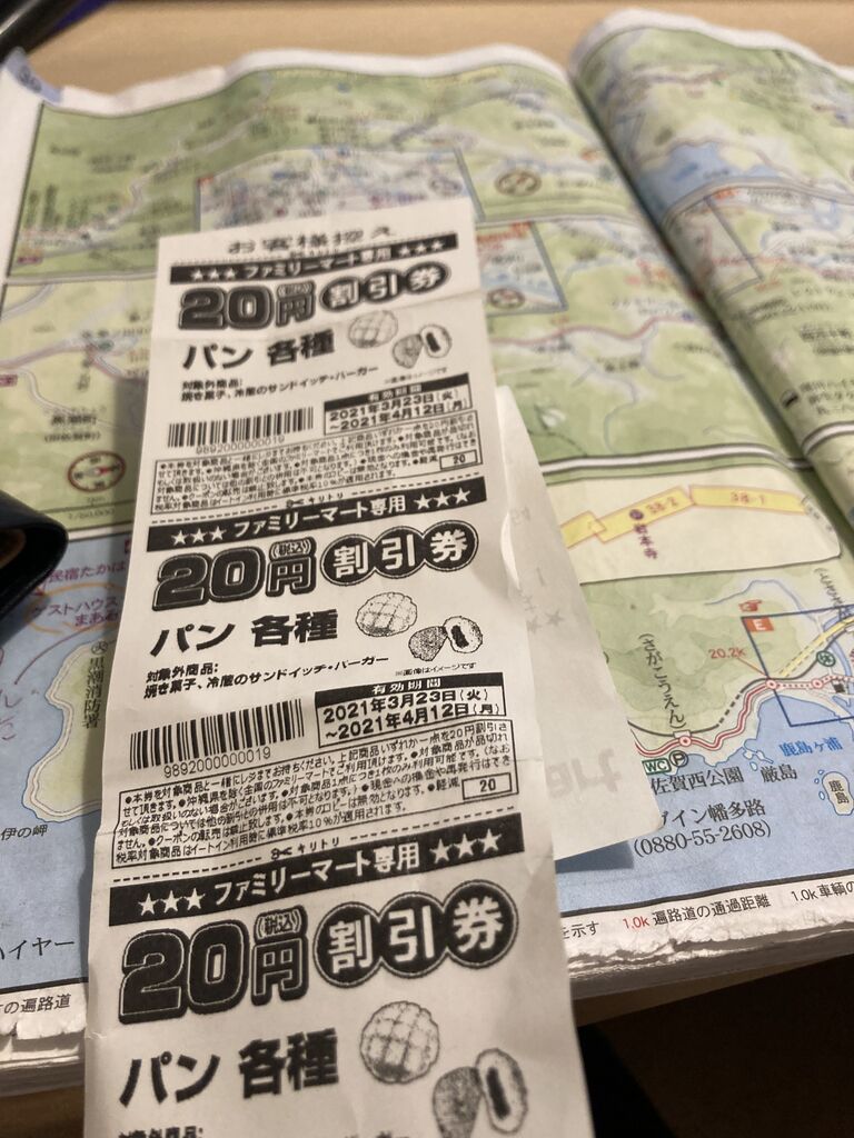 う、しまった。ファミマのパン割引券の期限が切れてた・・・