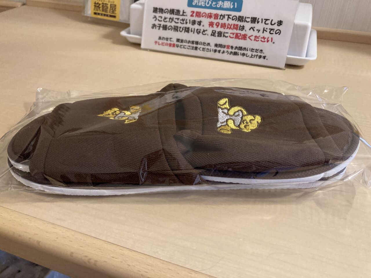 ホテルのフロントで100円のスリッパが売ってた。