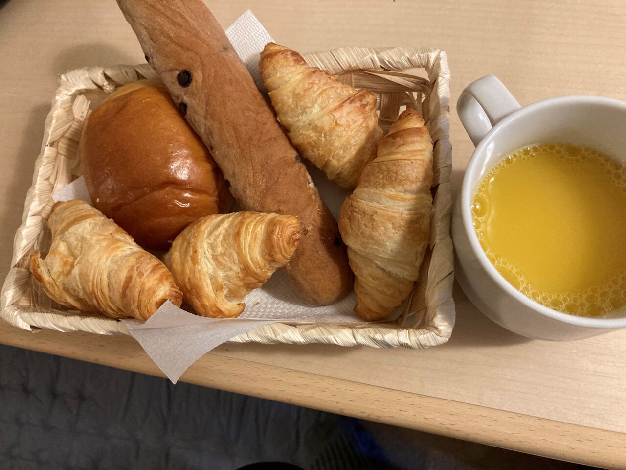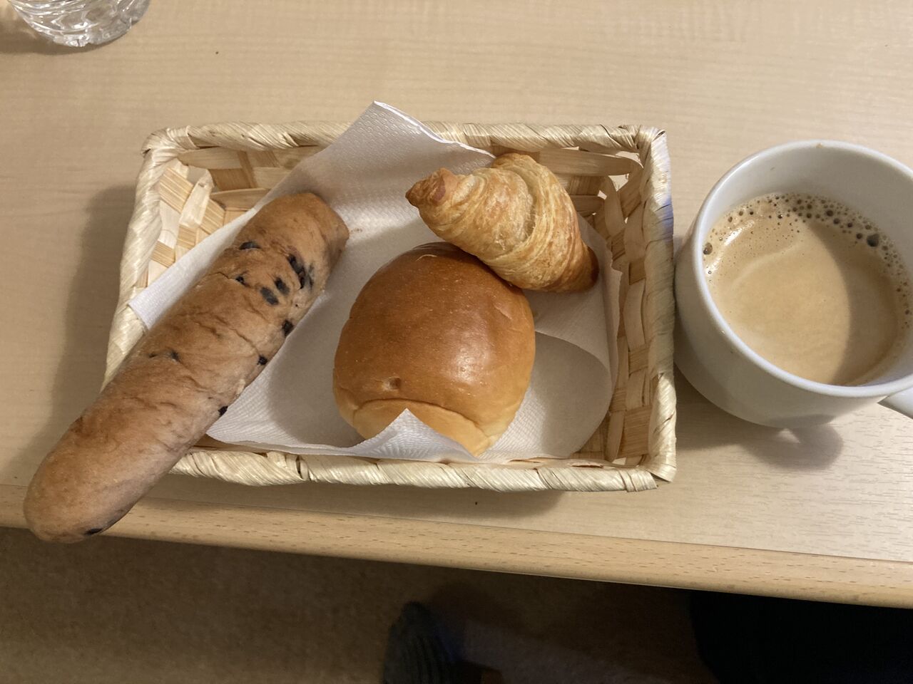まあ所詮無料の朝食だ。あるだけラッキー!本当はクロワッサンを全部取りたかったけど各種類1こずつ取る。
