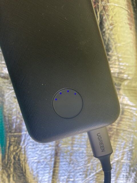 今日は絶好のソーラー日和だったから、モバイルバッテリーはランプ4つの満タンに回復!!