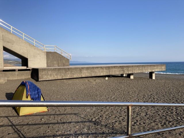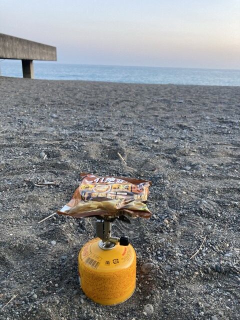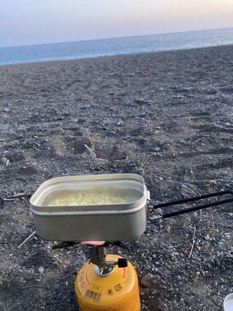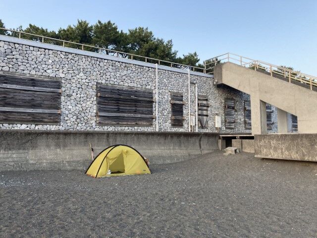 砂浜の最も陸地側にテントを張るつもりだけど、一応満潮になってもここまでは来ないよなということを念のために確認する。下手したら寝ているときに波をかぶるなんてことになりかねないし。