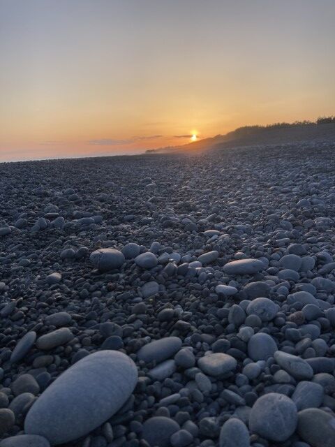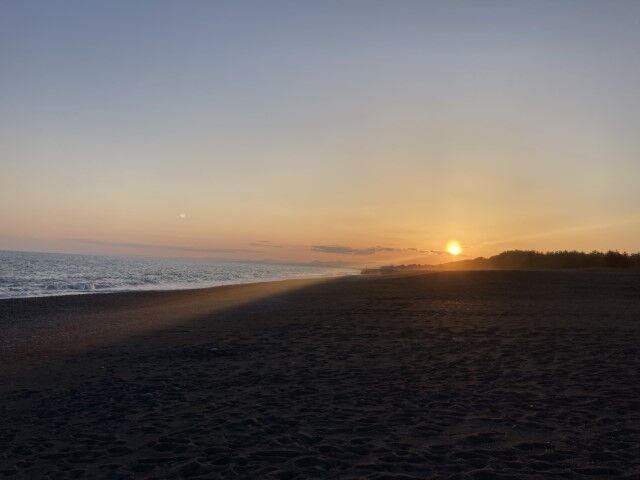 沈む場所がギリギリ海じゃないけどきれいな夕陽を今日も見れた!