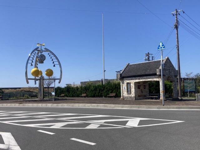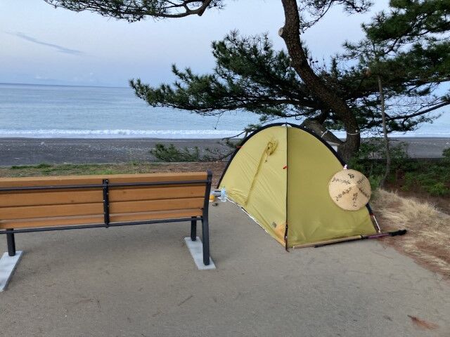 映え写真が撮れるモニュメントのようなベンチは寝袋の人には良いかも