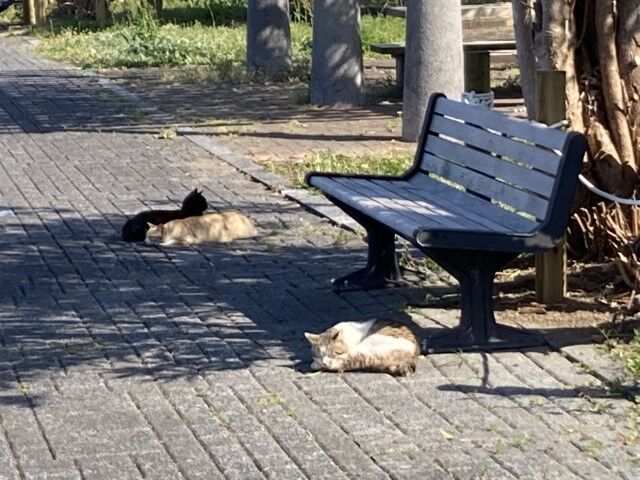 実際ここにいるぬこたちに別々の人がやってきてそれぞれの担当ぬこたちに餌をあげているみたいなのだ。まあ雨だったら気にしないで東屋の下だったけどね。