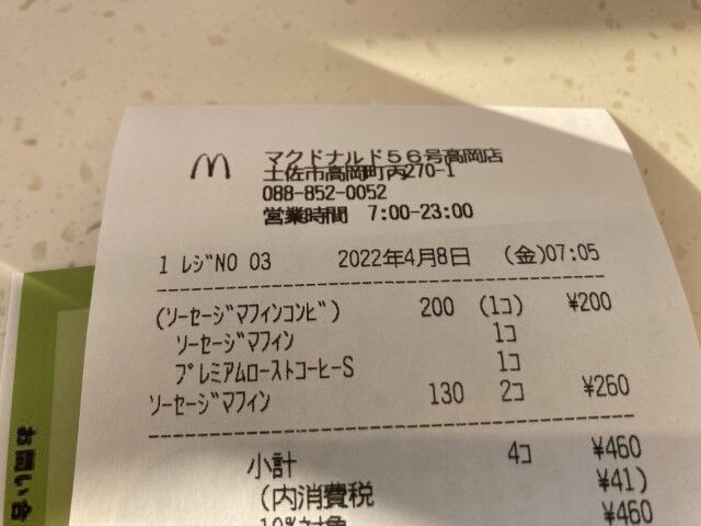 朝マックでソーセージマフィンを食べる