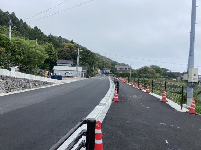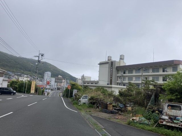 トンネルを抜けて以布利の漁港に下りる分岐の先あたりを歩いているときに前から車がやってきて止まった。