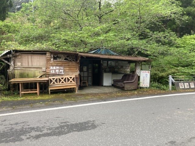 雨はザーザーだし時間も5時半ごろだったか。あと1時間以上はかかるかなというところ、これはお接待ということでお言葉に甘えて捕獲されたのだ笑
