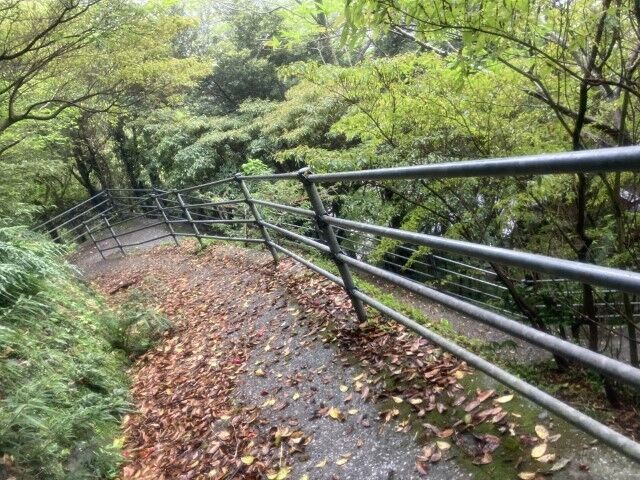 雨で滑るから安全な道を行こうとすると舗装された道をうねうね行かないといけない。