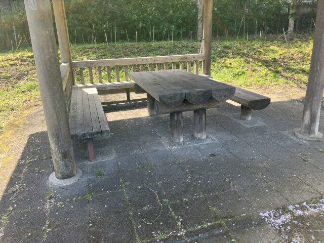 駐車場ほど近くに良い感じのベンチ?があったので休憩することに