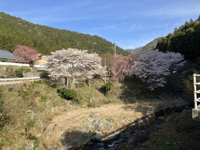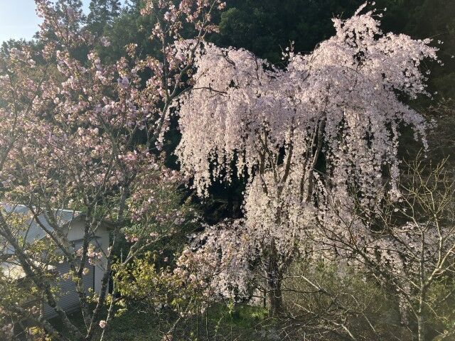 窓から立派なしだれ桜が見れる!
