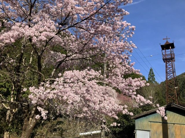 桜もかなり咲き進んでいる。火の見やぐら?