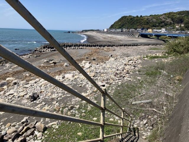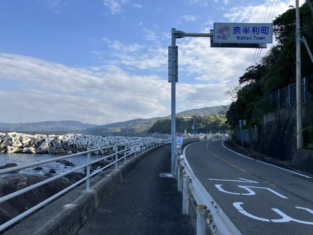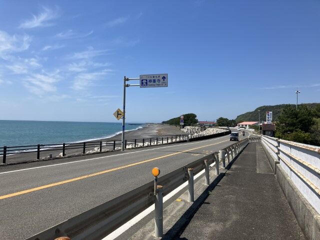 先の方に見えているのは民宿唐の浜なはずだ。見覚えがある景色。