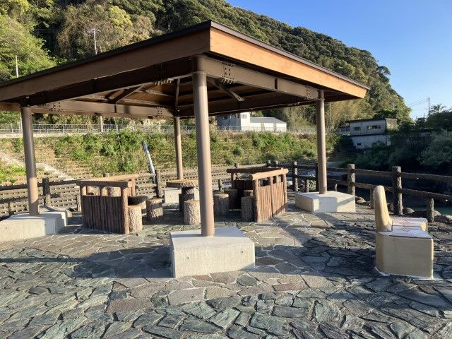 小さな川沿いに屋根付き休憩所があった!