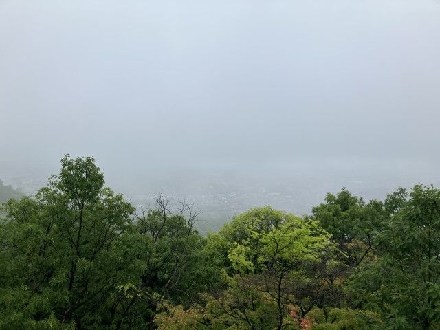 八栗寺方面を望む。山の上の方が見えないなあ。
