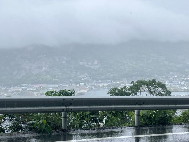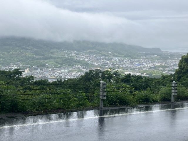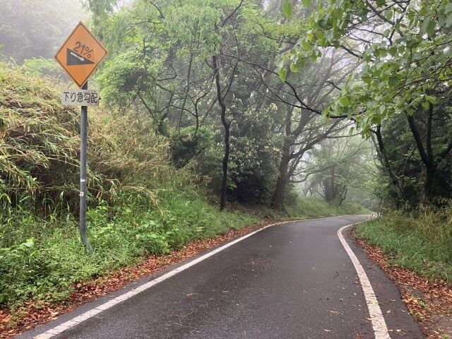 雨は少し小康状態。勾配のキツイアスファルト道路を登る。