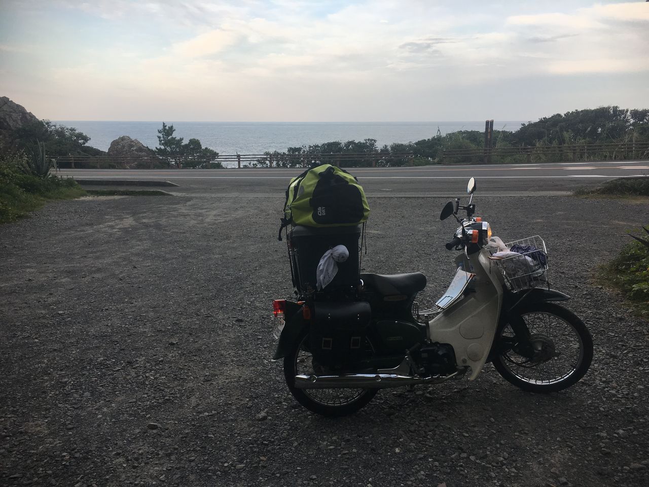 空と海と道路とカブが見えました(笑)