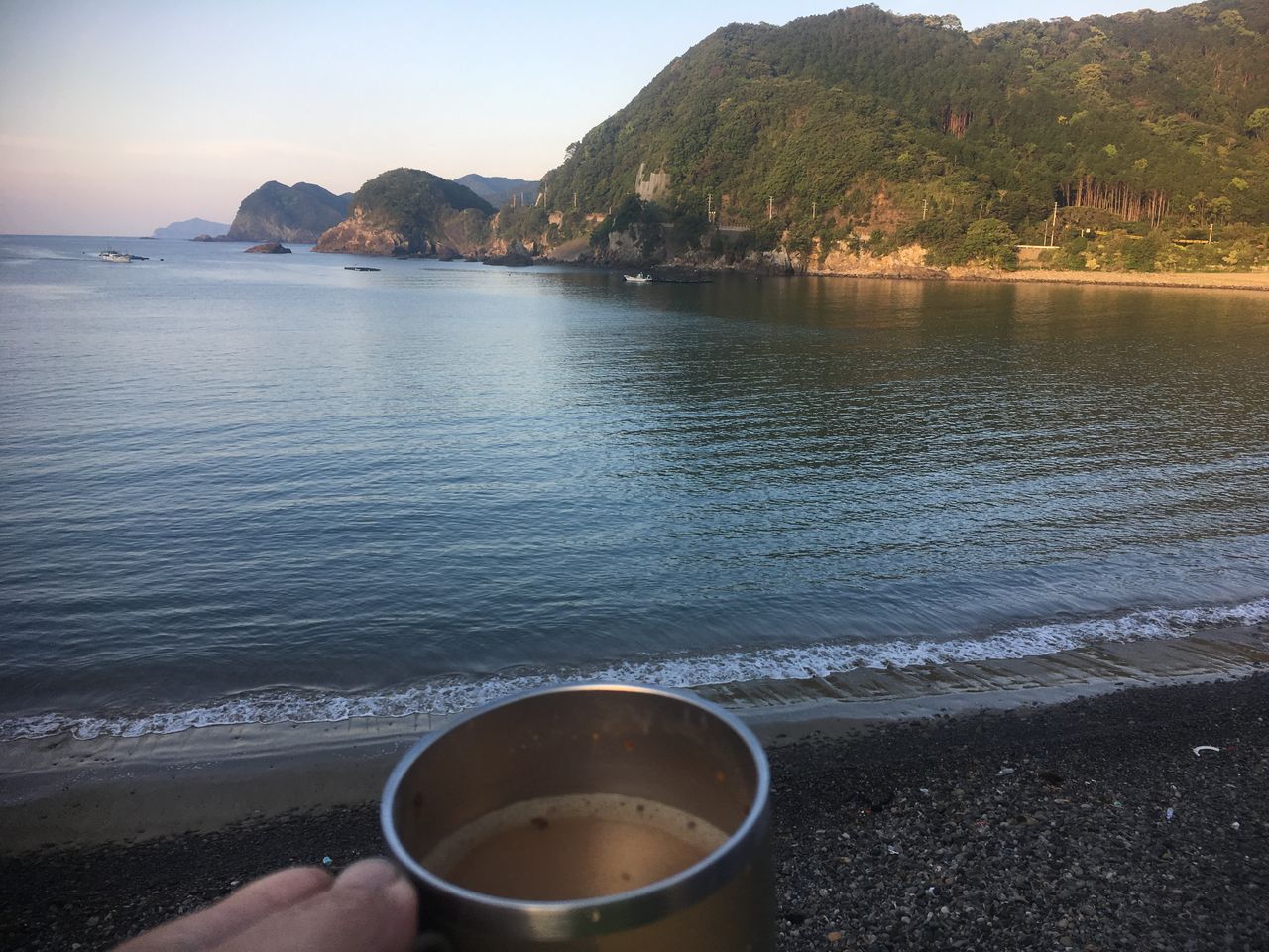 海を見ながらコーヒーを飲む。