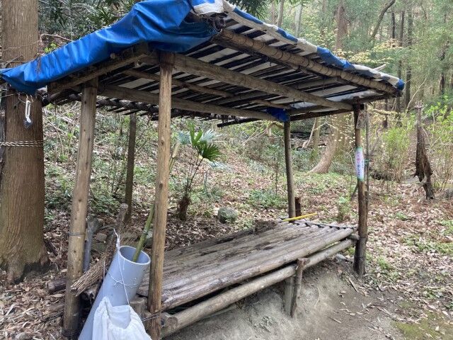 テント場所。お墓もあるでよー!