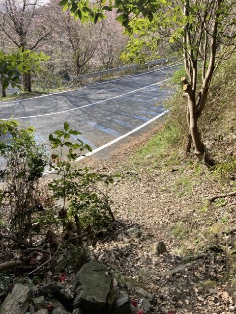 今度は下りだ。車道を横切る