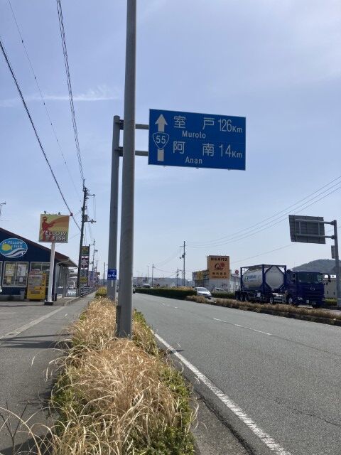 国道55号線に出た。室戸まで128キロだな
