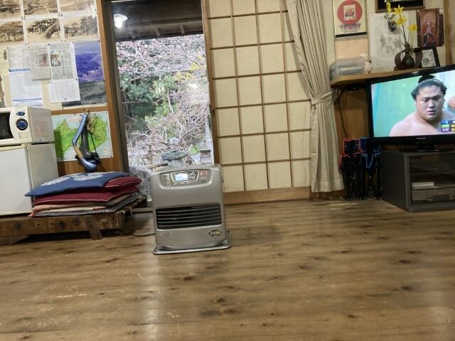 ご主人と同宿の人が食い入るように相撲を見ていた笑