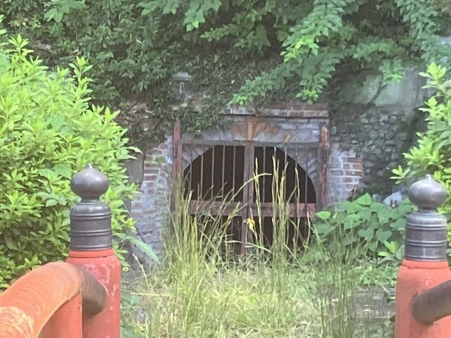 お堀のようなのと赤い橋